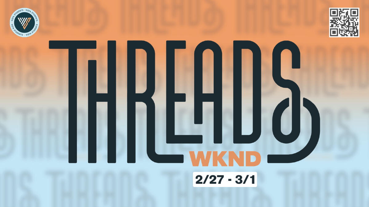 Threads Weekend is a fun weekend of games, worship, and discipleship for middle and high school students! We will have sessions in the Vista auditorium and our students will stay the night in host homes of Vista families with small group discussions led by college & young adult leaders.